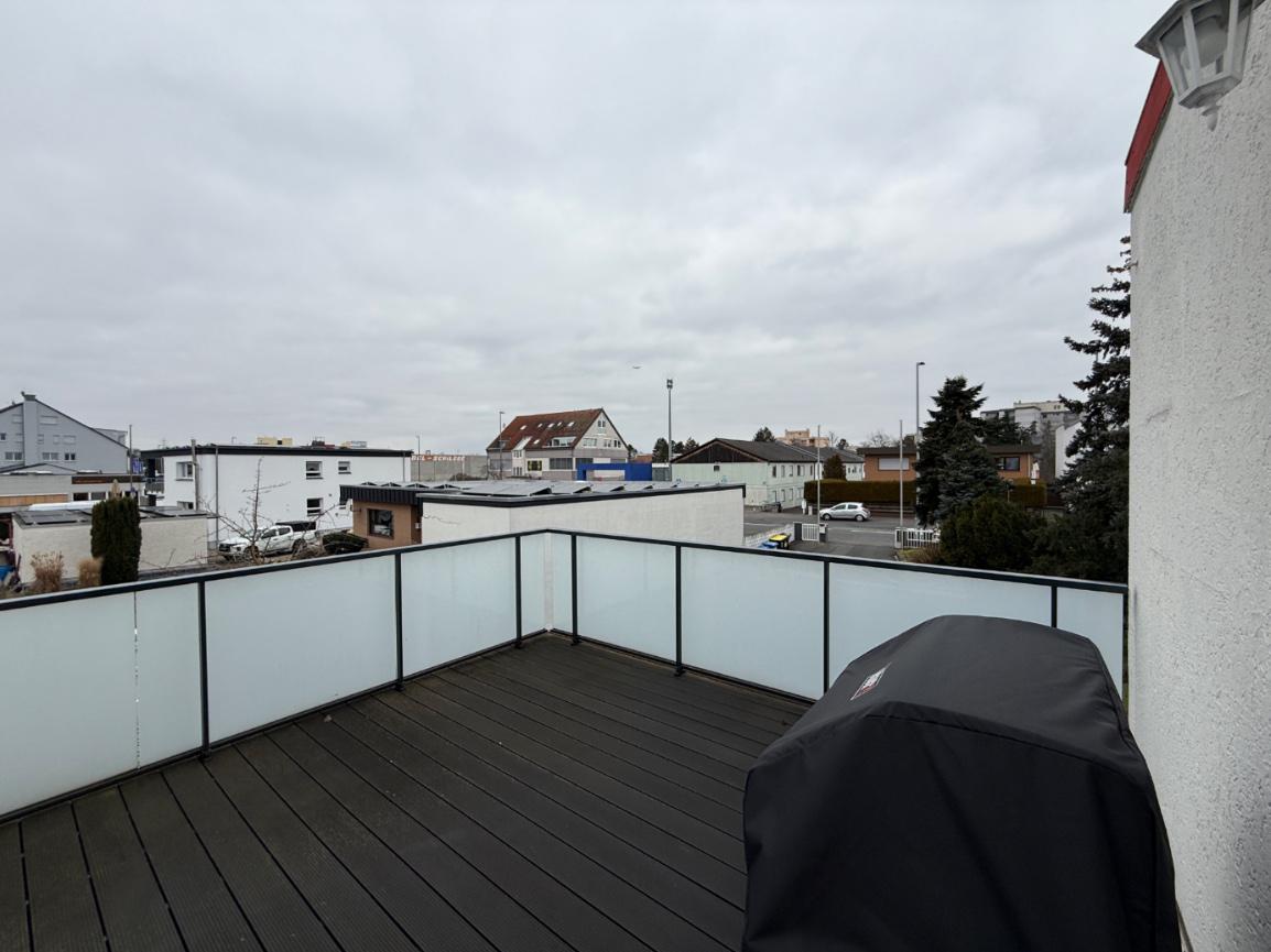 Tecnocasa präsentiert ein gepflegtes Wohn- und Geschäftshaus im Gewerbegebiet Hasengrund in Rüsselsheim. Die Immobilie ist vollständig vermietet und bietet eine sichere Kapitalanlage mit langfristig zuverlässiger Vermietbarkeit. Massive Bauweise, moderne Ausstattung und vielseitige Nutzungsmöglichkeiten prägen dieses attraktive Objekt. Beim Betreten der Gewerbeflächen im Erdgeschoss erwartet Sie eine helle und großzügige Arbeitsumgebung. Natursteinböden und klare Linien verleihen den Räumen eine repräsentative Ausstrahlung. Hier befinden sich zudem praktische Lagerflächen sowie eine Teeküche, die den Arbeitsalltag optimal unterstützen. Eine moderne Spindeltreppe führt ins erste Obergeschoss der Gewerbeeinheit. Im ersten Obergeschoss angekommen, öffnet sich ein weiterer Büroraum mit eigener Sanitäranlage und Zugang zu einem Balkon – ideal als separates Büro, Besprechungsraum oder Rückzugsort. Direkt angrenzend liegt die großzügige Wohnung mit ca. 112 m² Wohnfläche. Hochwertiges Echtholzparkett, eine moderne Einbauküche sowie eine ca. 14 m² große Terrasse schaffen ein komfortables und einladendes Wohnambiente. Besonders hervorzuheben ist das Entwicklungspotenzial des Gebäudes: Die massive Bauweise mit Ringanker ermöglicht eine vollständige Aufstockung um ca. 190 m². Dadurch kann ein weiteres Vollgeschoss entstehen, das die Wohn- oder Nutzfläche deutlich vergrößert und zusätzliches Wertsteigerungspotenzial bietet.